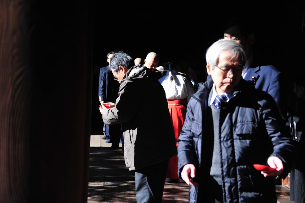 昨年に続き、今年も、われわれ「日本の真の独立を目指す有識者会議」(ECAJTI)が主催して、保守系団体の連携の強化という趣旨から新年の合同参拝を行い、各団体ごとに「国家安泰」の祈願札を授かりました。昨年は、計10団体でしたが、今年は計21団体と、大幅に増えました。来年以降も続けてまいりたいと考えてます。約40名が本殿への正式参拝に参加し、その後、参集殿の2階「楠の間」で、大塚海夫宮司のお話を拝聴しました。また、その後、しばし保守系団体の情報交換をしました。