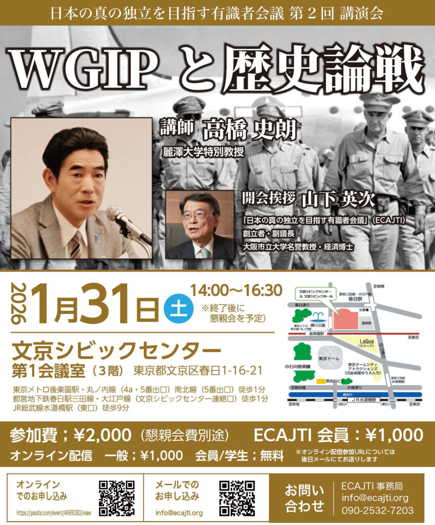令和8年1月31日 日本の真の独立を目指す有識者会議 第2 回 講演会 「WGIP と歴史論戦」