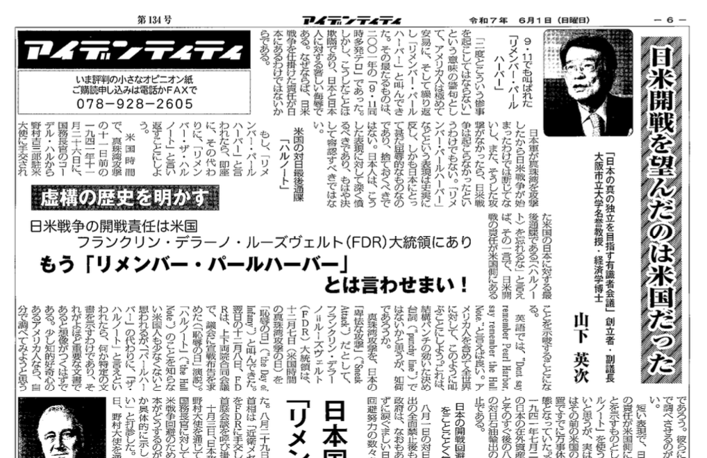 『アイデンティティ』紙 6/1号「日米開戦を望んだのは米国だった」