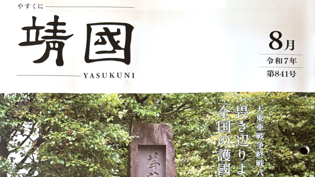 「靖國」8月号の論説欄に寄稿 「靖國神社の課題と国の独立」