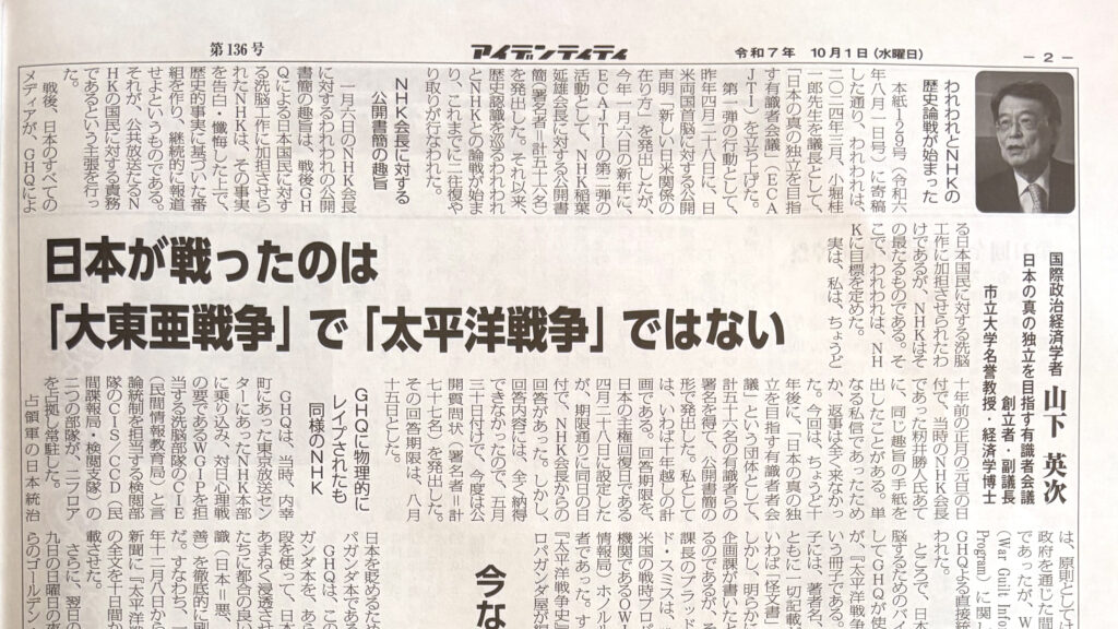 『アイデンティティ』紙 10/1号寄稿「われわれと NHK の歴史論戦が始まった」